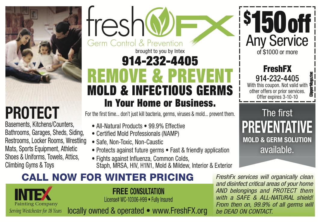 • Treat vulnerable areas and belongings with proprietary FreshFX Shield, AM500 to protect surfaces with 99.9% effective germ-eliminating shield